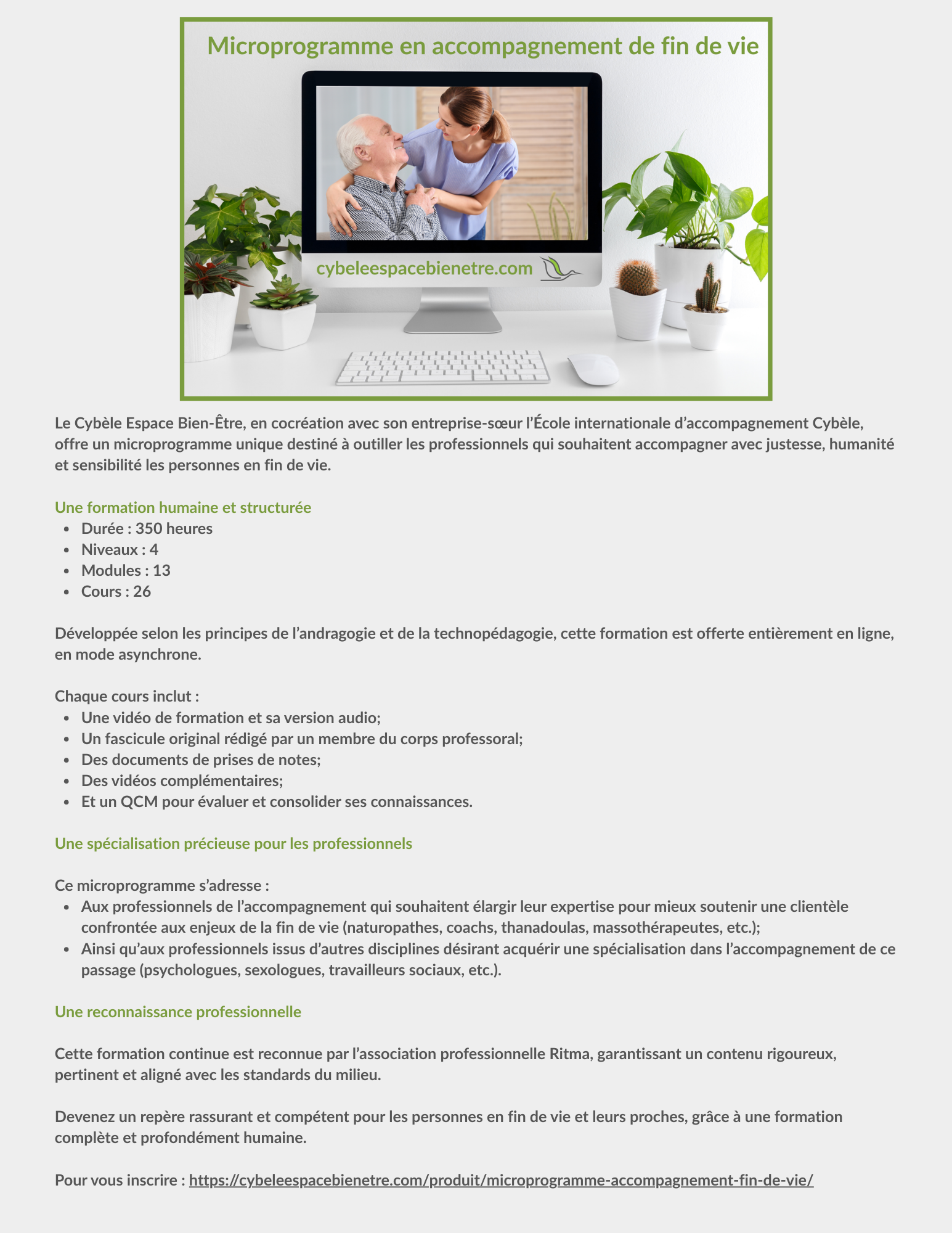 Site internet : https://cybeleespacebienetre.com/produit/microprogramme-accompagnement-fin-de-vie/