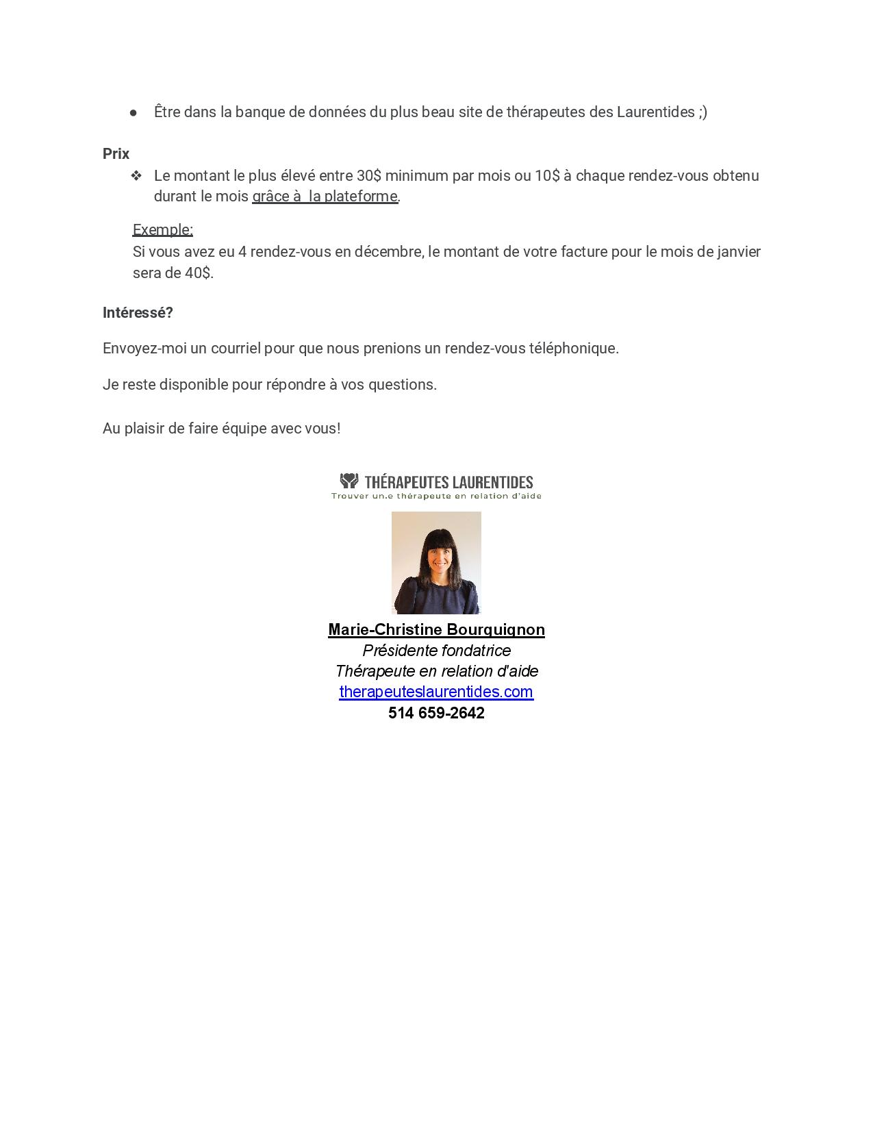 THÉRAPEUTES EN RELATION D'AIDE :OFFRE POUR FAIRE PARTIE DU REGROUPEMENT THÉRAPEUTES LAURENTIDES